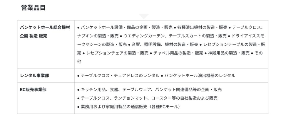 これまでバンケットホール・ホテル・飲食関連施設向けに、業務用クロスや備品のレンタルおよび物品販売を行ってきた実績を活かし、